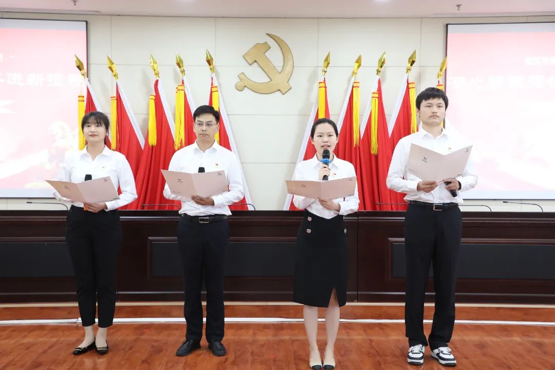 公司黨委委員、總經(jīng)理助理李茜同志帶領(lǐng)預(yù)備黨員進(jìn)行了入黨宣誓,鏗鏘有力的宣誓聲響徹大廳。會(huì)上還播放了此次公司黨委為慶祝建黨102周年而傾情創(chuàng)作的黨員重溫入黨誓詞短片《我宣誓》,現(xiàn)場氣氛莊嚴(yán)而熱烈,錚錚誓言在會(huì)場久久回蕩。