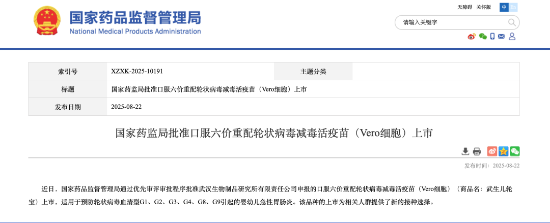 近日,國藥集團(tuán)中國生物武漢生物制品研究所研制的口服六價(jià)重配輪狀病毒減毒活疫苗(Vero細(xì)胞)(商品名:武生兒輪寶®)正式獲得國家藥品監(jiān)督管理局批準(zhǔn)上市。該產(chǎn)品是全球首款、價(jià)次最高的輪狀病毒疫苗,為我國預(yù)防用生物制品1類新藥,主要用于預(yù)防輪狀病毒引起的嬰幼兒急性胃腸炎。