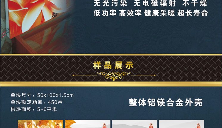 2014年,公司不惜巨資,加大研發(fā)力度,采用進(jìn)口特級鋁鎂全金板材,進(jìn)口納米非金屬碳纖維發(fā)熱體,高溫200℃UV金屬亞光烤漆工藝,實現(xiàn)了碳纖維墻暖進(jìn)步--碳纖維墻暖的無框化。